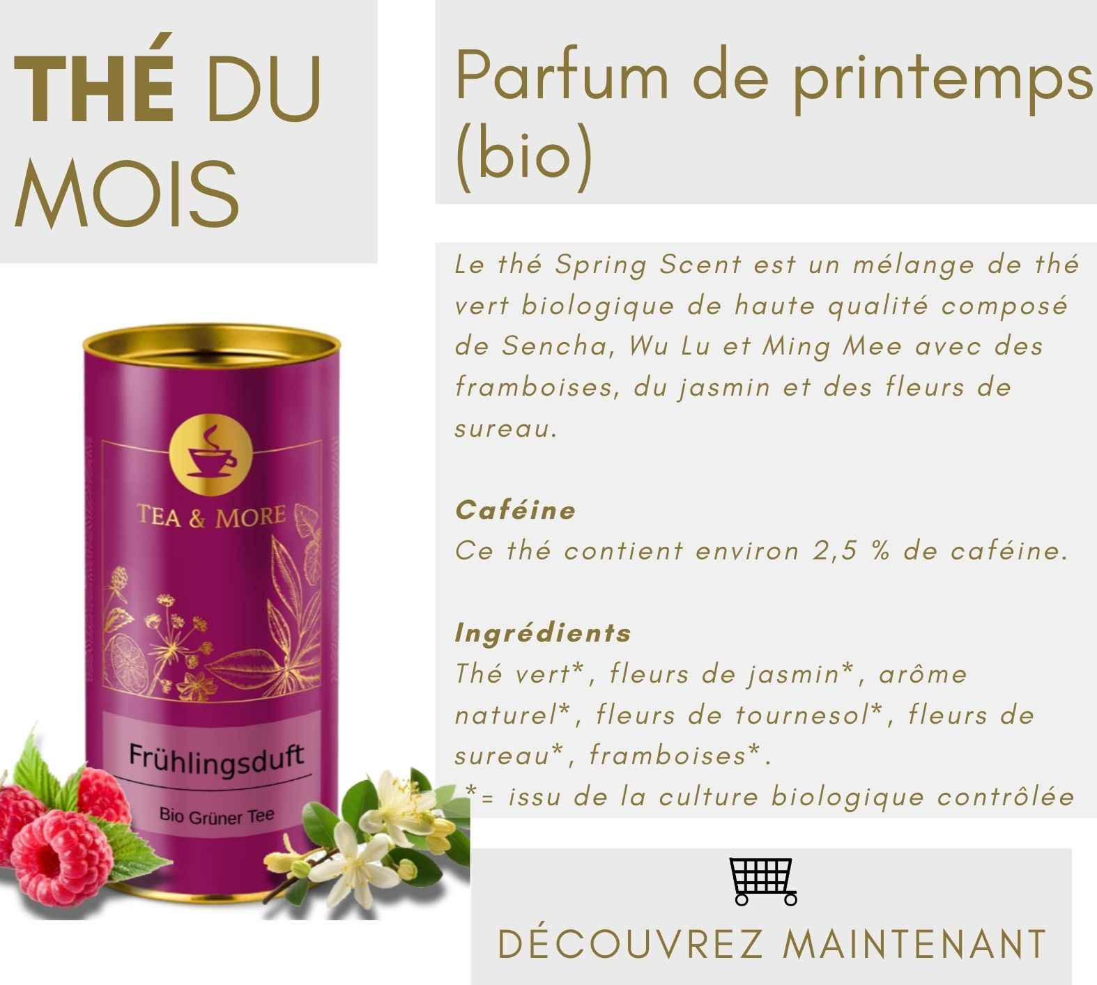 Nous proposons des accessoires de haute qualité et des offres spéciales pour votre expérience de thé, y compris du thé pour le sommeil et des thés pour les femmes enceintes.