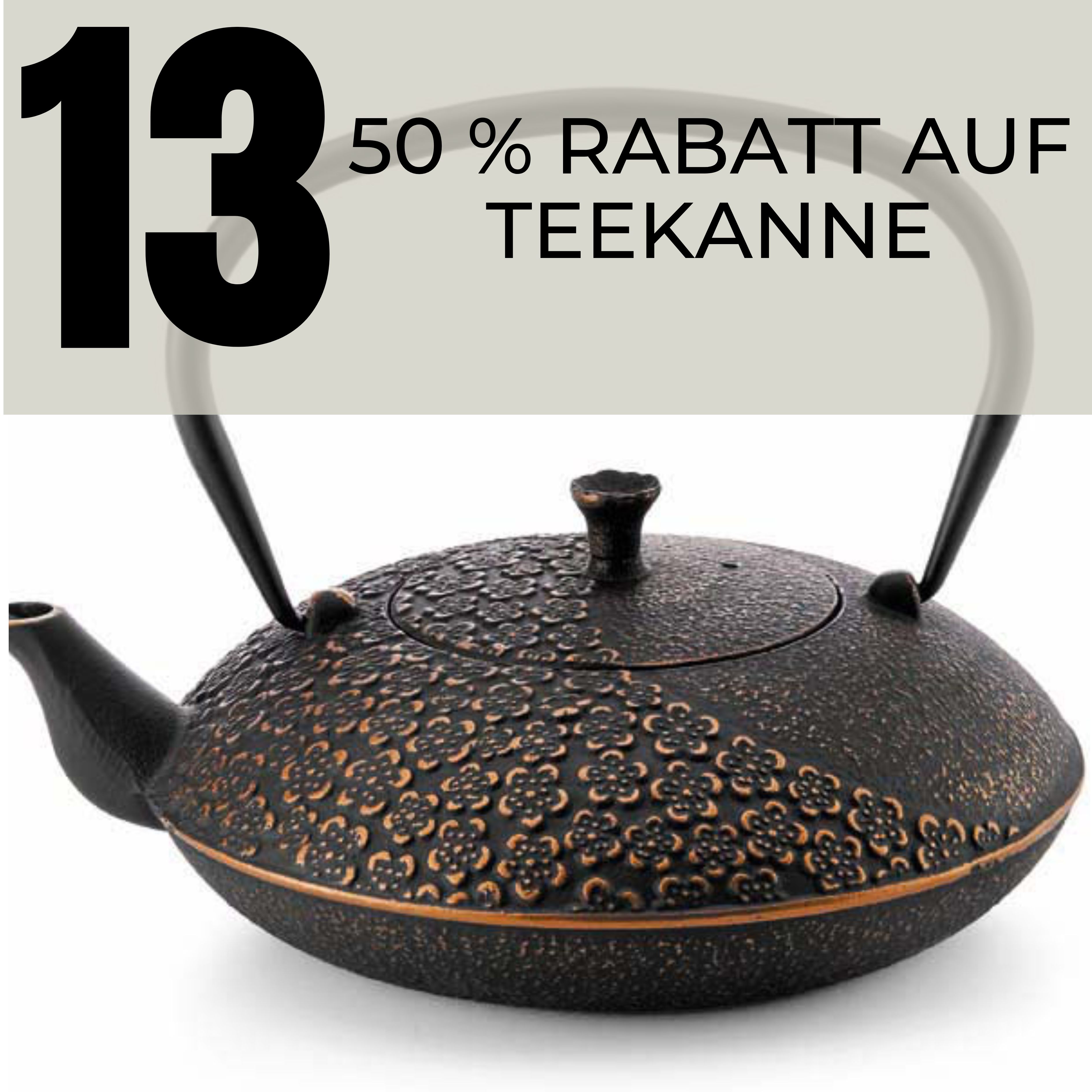 Um die Aktion eines bestimmten Tages nutzen zu können, muss Ihre Bestellung am selben Tag aufgegeben werden und mindestens 35€ lose Tees von Tea&More enthalten. Jede Aktion ist nur für den jeweiligen Tag gültig.